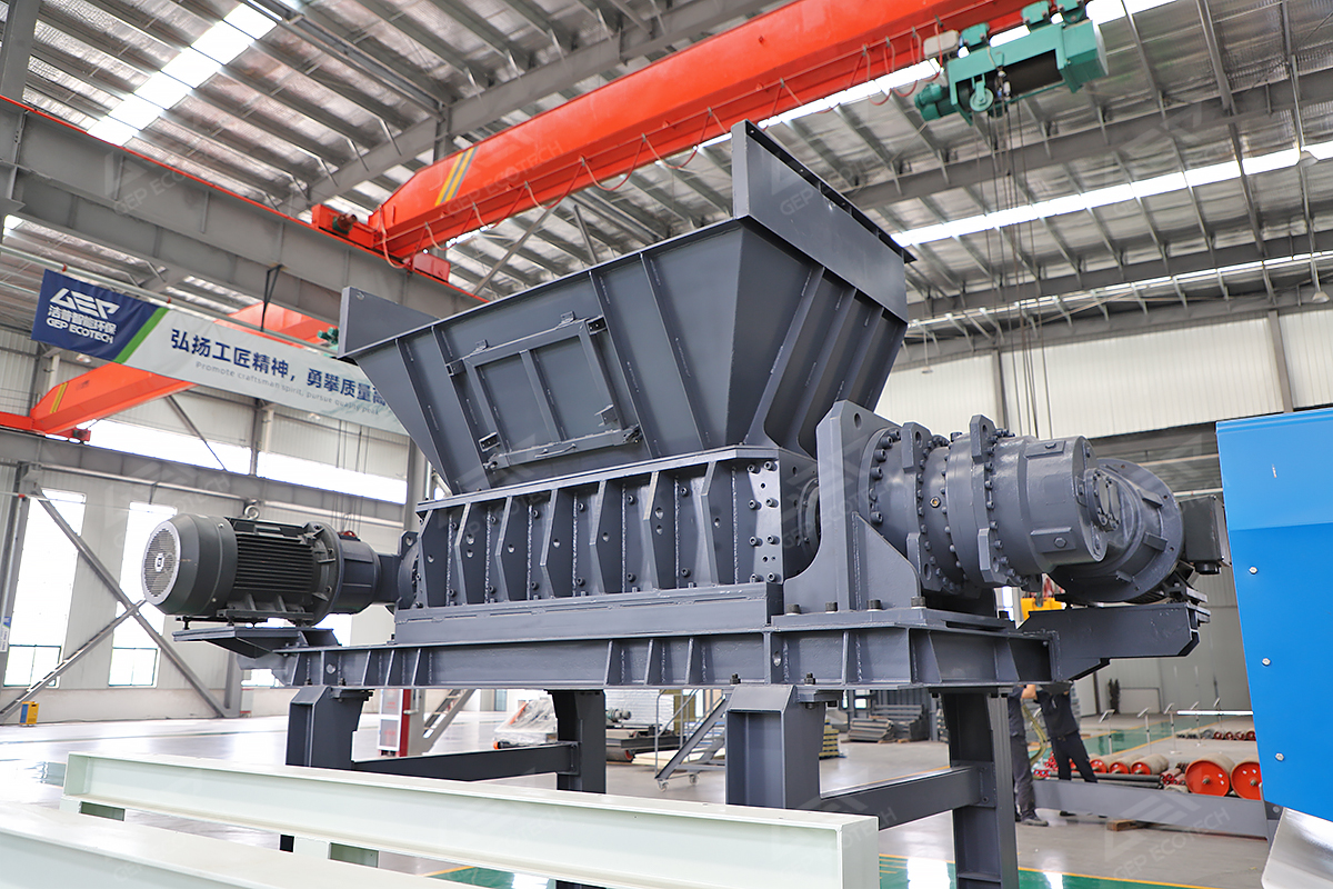双轴撕碎机是刹车片预破碎的核心设备,适用于摩擦材料(树脂、纤维、金属粉末)与钢板碎片的混合破碎。设备采用双轴剪切式结构,配备进口合金钢刀具,通过低速、高扭矩的旋转运动,对物料进行强力剪切、撕扯与挤压,将其破碎为20–300毫米的均匀碎块。