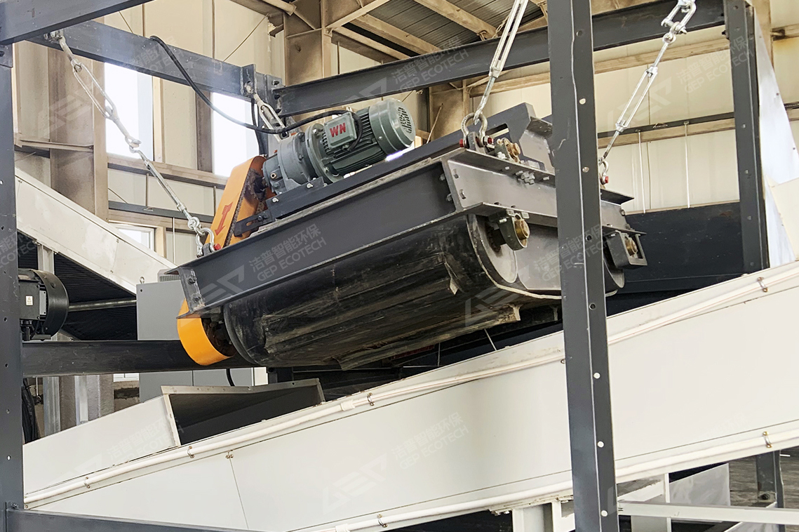 用于分离铁磁性金属(如钢板、铁铆钉)。利用磁场吸附原理,快速分离出铁磁性金属,纯度可达95%以上。分离后的钢板直接回炉重炼。磁选机可与输送机联动,实现自动化连续分选。