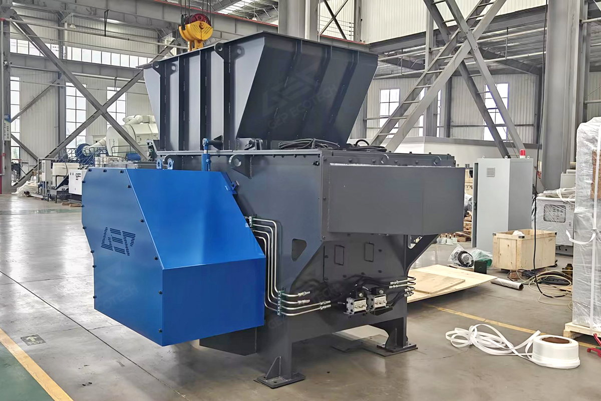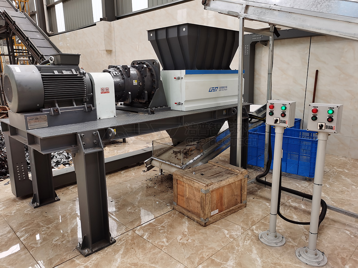 皮革材料具有高韧性、高弹性、不易撕裂的特点。传统的锤式破碎机或普通剪切机在处理皮革边角料时,往往面临诸多难题:1.易缠绕、易堵塞 2.出料不均刀具磨损快 3.噪音大、粉尘多。针对皮革行业的特殊需求,新一代双轴/四轴智能撕碎机应运而生,采用低转速、高扭矩的设计原理,利用动刀与定刀的相互撕扯作用,轻松切断高韧性皮革。无论是整张余料、带金属件的废皮,还是潮湿粘稠的废料,都能瞬间“化整为零”,彻底解决缠绕堵塞问题。